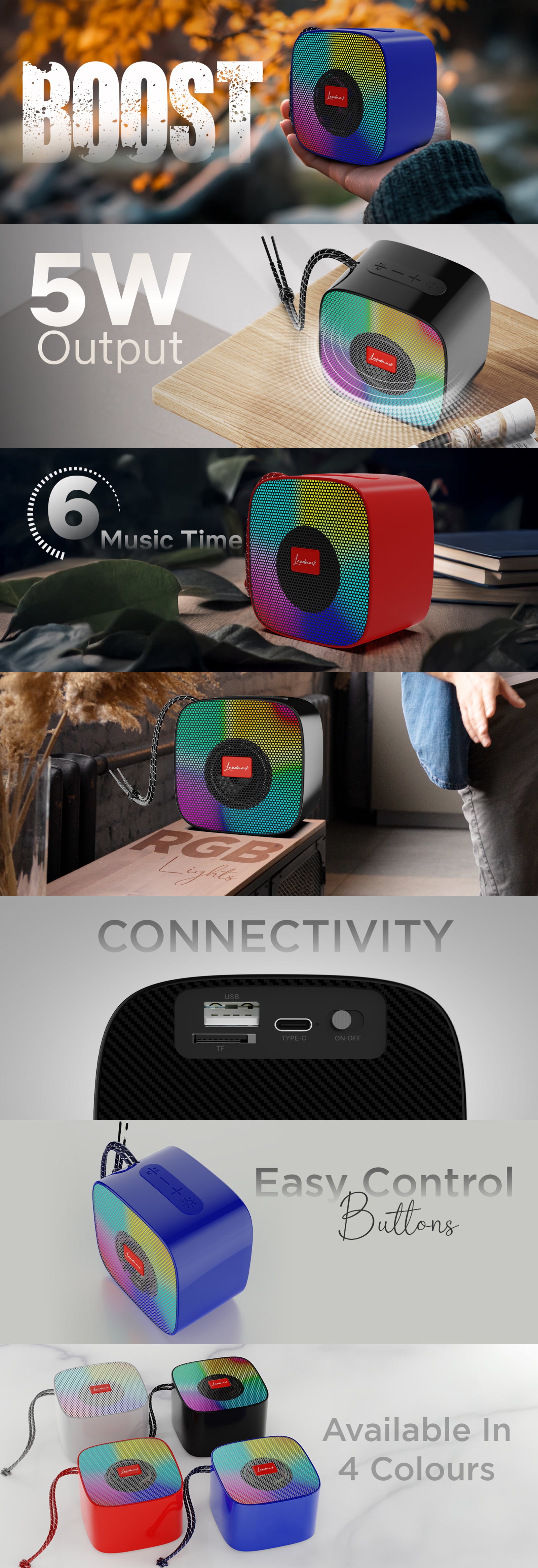 The Landmark Boost Portable Bluetooth Speaker combines sleek design with powerful performance. Its compact, portable build features vibrant RGB lighting, enhancing its modern and stylish appearance. With a 6-hour playtime and multiple playback options including Bluetooth, TF card, FM radio, and USB, this speaker is perfect for versatile, on-the-go entertainment. The sturdy design and easy-to-use controls ensure a seamless music experience, making it an ideal choice for any occasion.