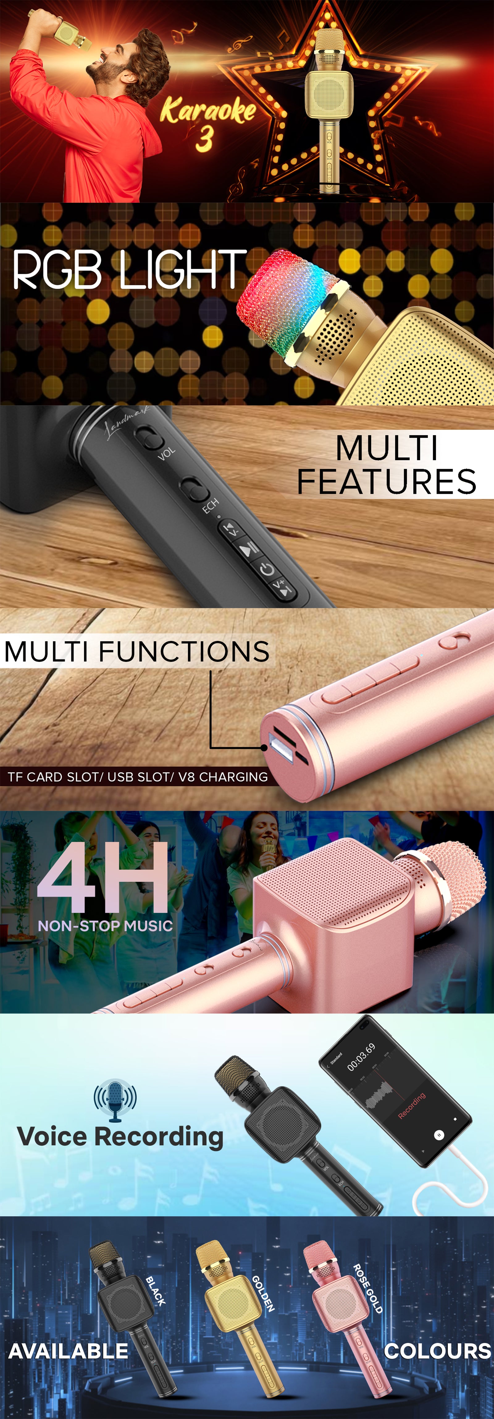 Take center stage and enjoy hours of musical entertainment with this user-friendly karaoke microphone. Turn every occasion into a memorable karaoke extravaganza, belting out your favorite tunes, sharing laughter, and creating lasting memories with friends and family.